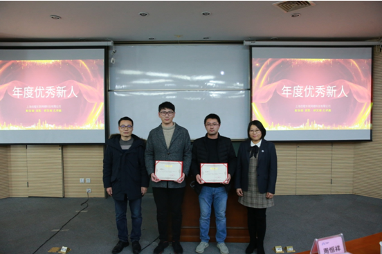 頒獎完畢后,2019年度優(yōu)秀新人代表孔祥彪、優(yōu)秀員工代表葛宏亮分享他們的獲獎感言。