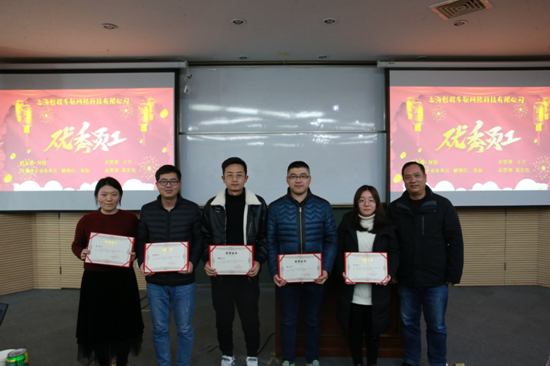 優(yōu)秀員工獎(從左到右王宇、葛宏亮、解艷江、張如、周悅、劉總(頒獎人員))