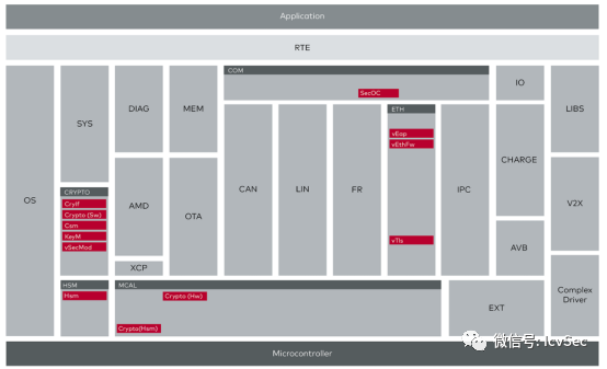 圖2:vector 標(biāo)準(zhǔn)軟件棧(紅色部分為security相關(guān)的組件)